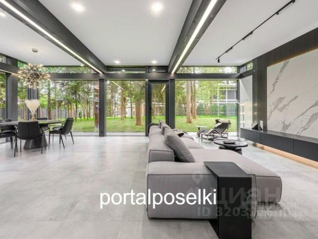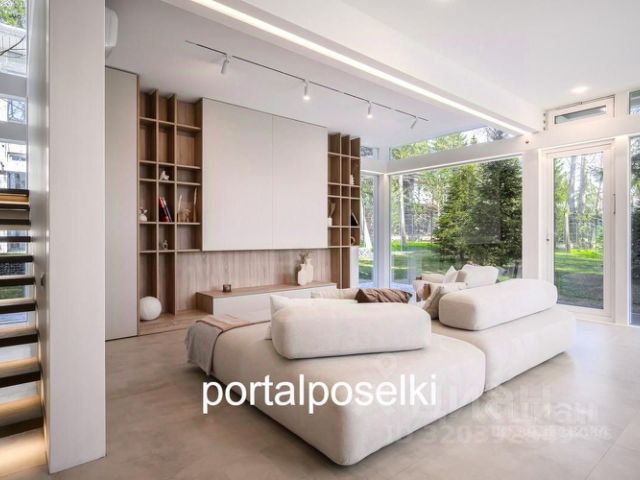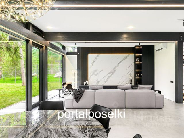 В проекте реализована безбарьерная среда, а благодаря полностью стеклянным стенам, достигается эффект единения с природой. Холодная кровля в стиле Райта добавляет особенную изюминку и избавляет от опасных для детей сосулек. Дизайн в модном сегодня минимализме. Высококачественная отделка, эксклюзивное цветовое решение стен, установлена современная кухня от Giulia Novars, полностью укомплектованная шведской техникой ASKO, встроенной док-станцией с роботом-пылесосом и беспроводной зарядкой для телефона. Столовая-гостиная полностью укомплектована стильной мебелью, есть и культовая кушетка Ле Корбюзье LC4, названная "машиной для расслабления" - икона дизайна ХХ века, занимающая место во множестве музеев дизайна по всему миру.
