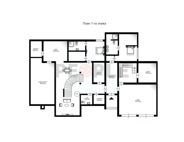 Планировка:1 этаж - холл, гардеробная, гостиная с камином, кухня, столовая, выход на террасу с джакузи и зоной барбекю, с/у, библиотека, хозяйская спальня с с/у, гардеробной, гостиной и кабинетом. Spa-зона: комната отдыха, с/у, бассейн (15х6м), выход на террасу, сауна, хаммам, купель,2 этаж - холл, мастер-спальня с с/у, гардеробной и балконом, 2 спальни, с/у,Цоколь - дискозал, бильярдная, кальянная, кинотеатр, тренажерный зал 3 части, 2 с/у, раздевалка, душевая, серверная, котельная.