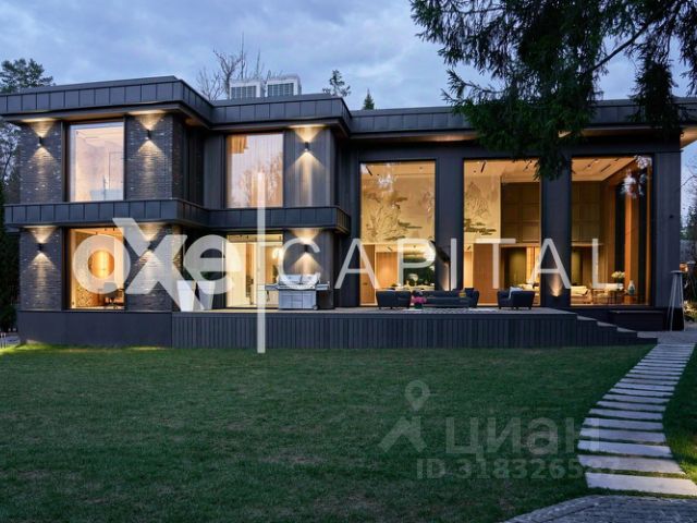 Лот: 9920051. ЭКСКЛЮЗИВ NF GROUP. Дом без отделки 843 кв.м на участке 30 cот. Кол-во спален: 5. Кол-во с/у: 8. Поселок "Жуковка 3". Рублево-Успенское шоссе, 8 км от МКАД. Без комиссии для покупателя. Уникальный дом 843 м² на участке в 30 соток в посёлке Жуковка 3 в 8 км от МКАД по Рублево-Успенскому шоссе. Этот проект — авторская работа Александры Фёдоровой, признанного мастера современной архитектуры. Дом занимает приватное и тихое расположение внутри поселка, вдали от посторонних глаз. Дом строился "для себя" — с применением дорогостоящих премиальных материалов, высококлассной инженерии и вниманием к каждой детали. Это действительно эксклюзивное предложение для ценителей архитектуры, уюта и качества без компромиссов. Планировка дома продумана до мелочей: просторный холл, несколько гардеробных и санузлов, каминный зал-столовая, основная и рабочие кухни с кладовыми, женский и мужской кабинеты (один из которых может служить спальней), отдельная зона для персонала с собственным входом, постирочная, бельевая, серверная, гараж на 3 машины и мастерская (имеет рядом санузел и можно сделать блок спальни). В жилой части — мастер-блок с будуаром, гардеробной, ванной и спальней, а также две детские спальни, каждая с гардеробной и с/у. Проект по вентиляции предусматривает увлажнение, по электрике выполнялся с учётом возможности установить "умный дом". Высота потолков — впечатляющие 6 метров, это придаёт пространству объём и лёгкость. Имеется готовый дизайн-проект интерьеров от студии SL, выдержанный в лаконичном и современном стиле. Фасад дома выполнен из португальского известняка, натурального гранита, премиального керамогранита и патинированной меди, что создаёт эффектную и благородную архитектурную палитру. Выполнено фасадное освещение на европейском оборудовании премиального уровня. Установлены эксклюзивные окна Skyframe и профили Schco, обеспечивающие максимум света, тепла и шумоизоляции. Дом уже введён в кадастр, функционирует отдельная котельная с двумя котлами Viessmann, а также своя скважина. Подведено 150 кВт электроэнергии, выполнен проект по вентиляции, слаботочным системам и освещению, установлены зенитные фонари для естественного дневного света. 1 Этаж: холл, гардеробная, с/у, серверная, кладовая, гараж на 3 м/м, мастерская (спальня), с/у, каминный зал-столовая, кухня, рабочая кухня с кладовой для продуктов, хозяйская кухня, кабинет женский, спальня с с/у и гардеробной, спальня с с/у и гардеробной, постирочная, с/у, бельевая Изолированная зона персонала: спальня, кухня, с/у, отдельный вход Мастер блок: будуар, гардеробная большая, ванная комната, спальня, 2 детские спальни каждая со своей гардеробной и с/у. Элитный коттеджный поселок "Жуковка-3" расположен на 8-м км Рублево-Успенского шоссе в окружении реликтового соснового леса. В поселке возведены 80 роскошных особняков площадью от 250 до 1500 кв.м, каждый из которых являет собой настоящий шедевр современной архитектуры. Каждый элитный загородный коттедж имеет участок от 10 до 50 соток, обрамленный индивидуальным ландшафтным дизайном. Территория поселка круглосуточно охраняется, полностью благоустроена, проложены асфальтовые дороги, установлено парковое освещение, обустроена гостевая автостоянка. Профессиональная служба эксплуатации поддерживает бесперебойную работу передовых инженерных систем. В непосредст