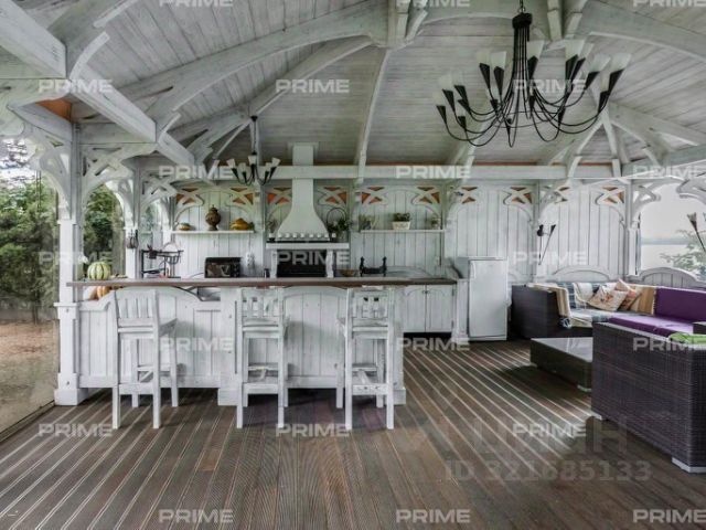 Особенности дома: интересная планировка, высокие потолки (3,3 м - на 1 этаже, 5,5 м - на втором), лесной участок - утопает в зелени, живописный вид из панорамных окон на вековые сосны, рябины, дубы.