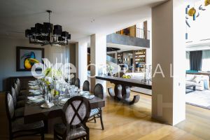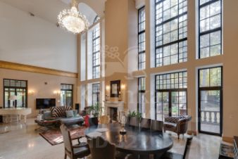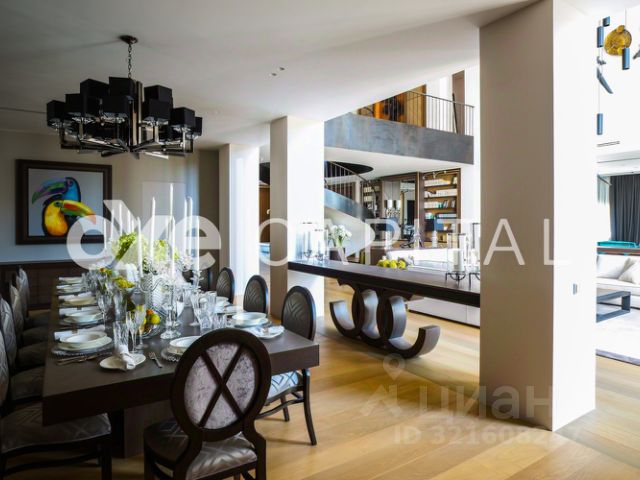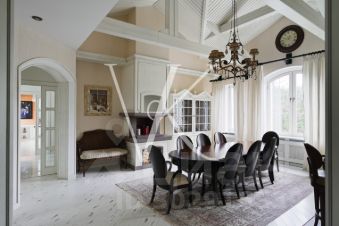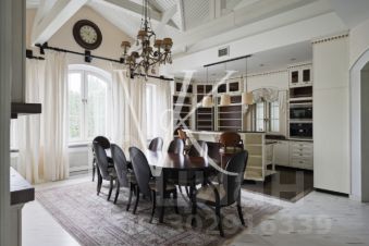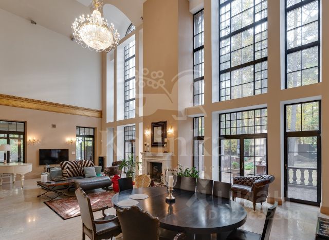 Лот 43191. Роскошный особняк в стиле эклектика, расположен на склоне холма в окружении вековых сосен и своим выходом к Москва-реке! Прекрасный участок с ландшафтным дизайном имеет свой выход к Москве-реке.Авторский архитектурный проект бюро Domoff Group. Изысканные элементы декора, эксклюзивная мебель создают атмосферу комфорта и спокойствия. Сложный рельеф участка определил планировочное решение интерьера. Подъезд к дому расположен на уровне второго этажа, поэтому именно здесь разместили входную и общественные зоны. Двусветная столовая и бар заняли центральное помещение этой части особняка. По периметру обеденную зону обрамляет балкон, где расположен холл третьего этажа, на котором находятся детские и гостевые спальни. Справа и слева к столовой примыкают каминная и кухня. Интерьер кухни построен на сложном сочетании серого, бежевого, белого и черного. Настоящим украшением кухни служит необычная люстра Visionnaire, декорированная чайными шашками и чайниками. Кухня Aster Cucine. Техника Wolf, Sub-Zero. Предметы интерьера Eichholtz. Спокойные тона внутренней отделки стали идеальным фоном для ярких и необычных работ Михаила Шемякина. Приглашаем на просмотр для детального ознакомления с домом! 1 этаж: гараж, холл, санузел, гардеробная, кухня, столовая, гостиная со вторым светом, каминный зал, лифт, терраса 2 этаж: спальня с гардеробной и санузлом - 3шт., спальня, санузел, кабинет, постирочная Цоколь: мастер - спальня с санузлом и гардеробной, кабинет, бассейн, сауна, санузел, спальня с санузлом, блок для персонала, постирочная Коттеджный поселок "Знаменское поле" расположился всего в 14 километрах от МКАД и насчитывает порядка 360 домов. Поселок Знаменское поле расположен в уединенном, элитном районе города. Здесь предусмотрены все удобства и разнообразные развлечения для жителей поселка. "Знаменское поле" расположено возле деревни Знаменское, где в свое время проживали столбовые дворяне и известные купцы. Любителям истории можно посоветовать посетить расположенную тут церковь постройки 18 века. Между прочим, она до сих пор функционирует. Живописные места, экологически чистый воздух и заповедная зона. Хвойные леса и близкое соседство с Москвой рекой. Купить коттедж с участком 50 соток в городском округе Одинцовском Московской области.