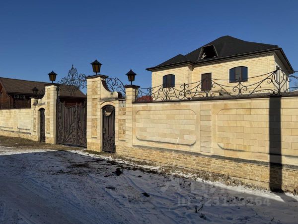На участке газон, деревья, крытая парковка на 3 автомобиля, откатные ворота.