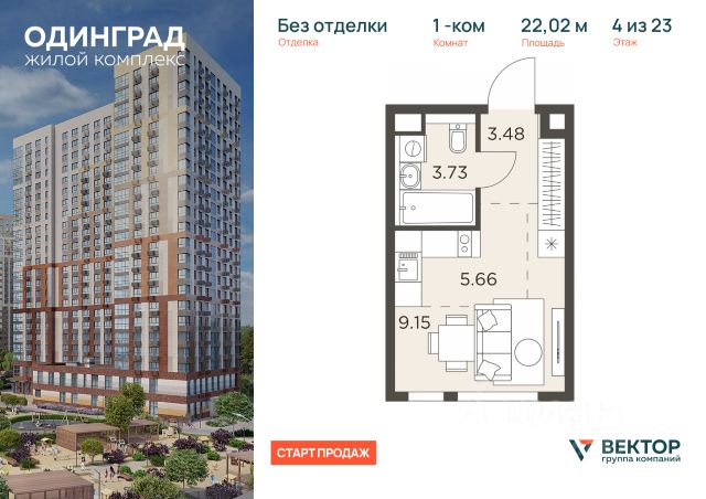 Прямая продажа от застройщика. Продается 2-комн. квартира площадью 53,36 кв.м на 3 этаже 23 этажного дома в ЖК "Одинград" от федерального девелопера ГК "Вектор". Расположение Запад Одинцова — район с чистым воздухом, лесопарками, спортивной инфраструктурой и удобным выездом в Москву. Транспортная доступность Собственный выезд на М-1. 10 минут до Москвы, 20 — до Москва-Сити. Общественным транспортом: 30 минут до метро, 40 — до Киевского вокзала. Инфраструктура На территории — два детских сада, своя школа, магазины, супермаркеты, аптека, стоматология, салоны красоты, кафе, студия йоги, барбершоп, химчистка. В шаговой доступности — престижные школы (СОШ 9, СОШ 12, Одинцовская гимназия 13), лицеи, гимназии, включая филиал МГИМО, Ледовый дворец "Армада", шахматная школа, волейбольный центр, спорткомплекс с тренажерами.*
