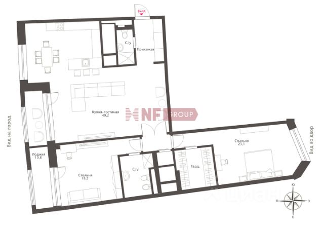 Пентхаус занимает весь этаж. Эффективная планировка от архитектурного бюро "Цимайло, Ляшенко и партнёры" поделена на три зоны: