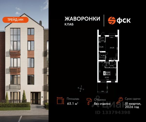 Корпус сдан! Прямая продажа от застройщика! Загородный жилой комплекс класса Комфорт Плюс. Продаётся 2-к квартира номер 83 в сданном корпусе общей площадью 72.5 кв.м на 1-м этаже 4 этажного дома. Особенности: - Квартира доступна к покупке в Trade-In. - Распашная планировка - отличное сочетание удобства и свободы. - Увеличенное остекление - больше света и простора в вашем доме. - Дополнительный вход - удобство для семьи и гостей. - Вид из окна: двор - Вид из окна на соседний корпус - Просторная 2-комнатная квартира - Бесплатный трансфер до загородного поселка - 5 минут до МЦД-4 - Отличный вариант для проживания или инвестиций - Двухуровневая квартира - пространство и стиль в одном. - Своя благоустроенная набережная в поселке, - Престижная школа и детский сад на территории, - Закрытая территория и видеонаблюдение - Собственный парк вдоль набережной - Круглосуточная охрана - Зона с беседками и барбекю - Живописная река в пешей доступности Расположение комплекса: Для создания гармоничного пространства в проекте собрана вся необходимая инфраструктура, начиная от закрытых дворов с детскими площадками и зонами отдыха, тренажерного спортивного зала с мини-саунами и детской комнаты, до благоустроенной набережной, где разместится большой игровой хаб с прогулочным маршрутом и зоной барбекю. Благоприятная роза ветров и отсутствие производств влияют на качество воздуха. Вода и природа успокаивают и заряжают энергией. В жилом комплексе "Жаворонки Клаб" создана современная образовательная среда с полным циклом обучения - от детского сада до старших классов. Школа 560 мест с инновационным оснащением. Детский сад 260 мест. Все образовательные учреждения будут муниципальными и записаться в них сможет каждый маленький житель комплекса. Дорога до школы или детского сада займет не более 5 минут. Ваш ребенок поспит подольше и не опоздает к первому уроку! Здесь также будет расположена муниципальная поликлиника, административно-бытовой комплекс, магазины и кафе. Транспортная доступность: В 30 м от территории ЖК находятся остановки общественного транспорта, откуда можно добраться до ближайших железнодорожных станций Санино (5 мин.), Крёкшино (7 мин.) и Жаворонки (7 мин.), а в 10 минутах - остановки маршрутов, идущих до станций метро Саларьево и Парк Победы. Съезд на Минское шоссе расположен в 700 м от ЖК. Внутренняя инфраструктура: В рамках проекта будут построены муниципальные детский сад и общеобразовательная школа, административно-бытовой комплекс (магазины формата "у дома", точки бытовых услуг, street-retail, кафе, кофейня, аптека, а также многофункциональный торгово-развлекательный центр с ФОК и амбулаторией. Для удобства и комфорта жителей, когда все "под рукой" мы разместили в ЖК бесплатный тренажерный зал с раздевалками и мини-саунами. Сюда можно приходить самостоятельно или с личным тренером для функциональной тренировки. Для детей обустроена игровая с множеством развивающих сюжетных игр, а также различные "лазалки". Эта детская комната также подойдет для