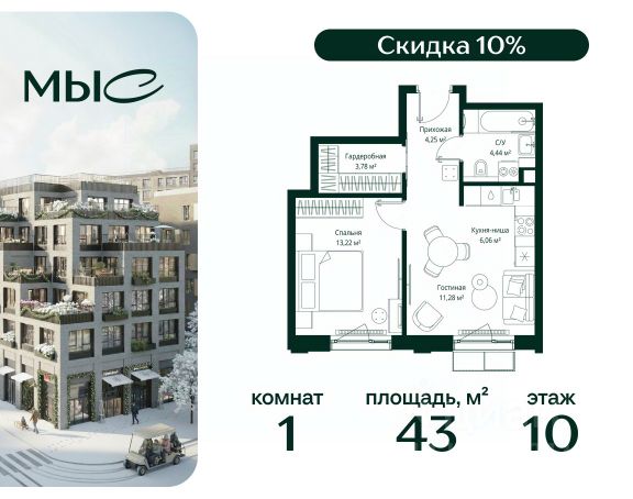 Прямая продажа от застройщика. Продаётся 1-комнатная квартира общей площадью 64.84 м² без отделки в премиальном жилом комплексе "МЫС" на 10-м этаже 12 этажного дома. Квартира расположена в корпусе "Волга". Проект МЫС — это, прежде всего, идеальное место для семей. В рамках проекта построят государственную школу, два детских сада и дворец спорта площадью 20 000 м2 с термальным комплексом, выплывным бассейном, фитнес-залом, теннисными, сквош и падел кортами и секциями для детей. На территории площадью, сравнимой с тремя парками Зарядье, появятся кафе и рестораны, пруд с набережной, спортивные и детские площадки, скейт-парк, лыжные и веломаршруты. Расположение: - 2 минуты до скоростной трассы М1 и Минского шоссе; - 10 минут до МКАД; - 15 минут до МЦД Лесной Городок - 20 минут до делового центра "Москва-Сити"; - 28 минут до аэропорта "Внуково". Благоустройство: - велосипедные и лыжные маршруты; - собственная набережная и парк; - лаунж-зоны в окружении природы; - беседки у очага; - дворец спорта площадью 20 000 м²; - термальный комплекс с тремя бассейнами; - 4 теннисных и падел-корта; - 6 сквош-кортов; - многофункциональный спортзал; - скейт-парк; - просторная площадь для прогулок с фонтаном; - детский клуб с творческими секциями; - гастро-доминанта; - кафе у пруда, рестораны, ритейл. Окружение - соседство с лесным фондом; - школа на 1250 мест и 2 детских сада на 350 и 255 мест; - Дубковский и Подушкинский леса, парк "Рассказовка", Мещерский парк. Действуют специальные условия при 100% оплате, подробности уточняйте у менеджера в офисе продаж.