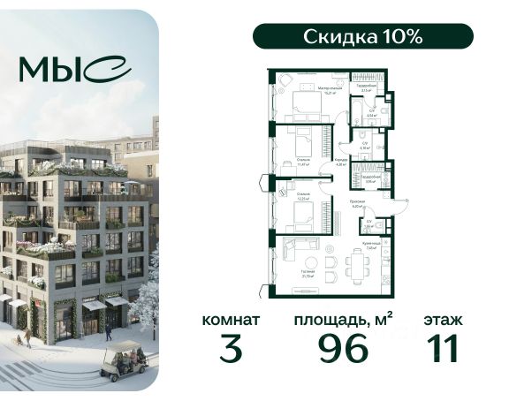 Прямая продажа от застройщика. Продаётся 4-комнатная квартира общей площадью 135.68 м² без отделки в премиальном жилом комплексе "МЫС" на 11-м этаже 12 этажного дома. Квартира расположена в корпусе "Волга". Проект МЫС — это, прежде всего, идеальное место для семей. В рамках проекта построят государственную школу, два детских сада и дворец спорта площадью 20 000 м2 с термальным комплексом, выплывным бассейном, фитнес-залом, теннисными, сквош и падел кортами и секциями для детей. На территории площадью, сравнимой с тремя парками Зарядье, появятся кафе и рестораны, пруд с набережной, спортивные и детские площадки, скейт-парк, лыжные и веломаршруты. Расположение: - 2 минуты до скоростной трассы М1 и Минского шоссе; - 10 минут до МКАД; - 15 минут до МЦД Лесной Городок - 20 минут до делового центра "Москва-Сити"; - 28 минут до аэропорта "Внуково". Благоустройство: - велосипедные и лыжные маршруты; - собственная набережная и парк; - лаунж-зоны в окружении природы; - беседки у очага; - дворец спорта площадью 20 000 м²; - термальный комплекс с тремя бассейнами; - 4 теннисных и падел-корта; - 6 сквош-кортов; - многофункциональный спортзал; - скейт-парк; - просторная площадь для прогулок с фонтаном; - детский клуб с творческими секциями; - гастро-доминанта; - кафе у пруда, рестораны, ритейл. Окружение - соседство с лесным фондом; - школа на 1250 мест и 2 детских сада на 350 и 255 мест; - Дубковский и Подушкинский леса, парк "Рассказовка", Мещерский парк.Действуют специальные условия при 100% оплате, подробности уточняйте у менеджера в офисе продаж.