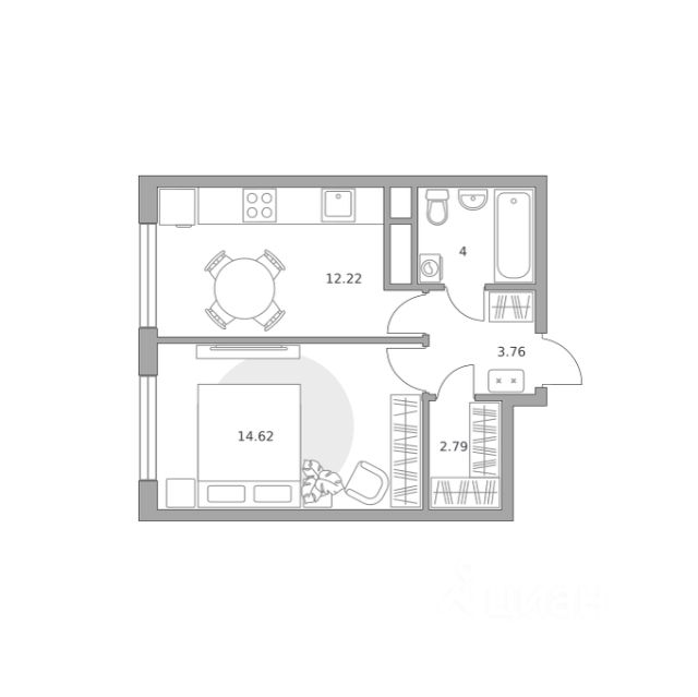 Продаётся 1-комнатная квартира 573, площадью 37,39 м², на 14 этаже в ЖК "Притяжение Сити" корпус 8. Стоимость — от 9788329 руб. Квартира без отделки, планировка односторонняя, окна на улицу.