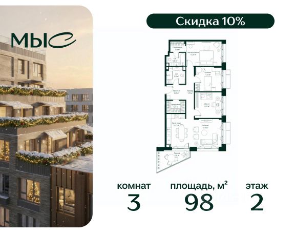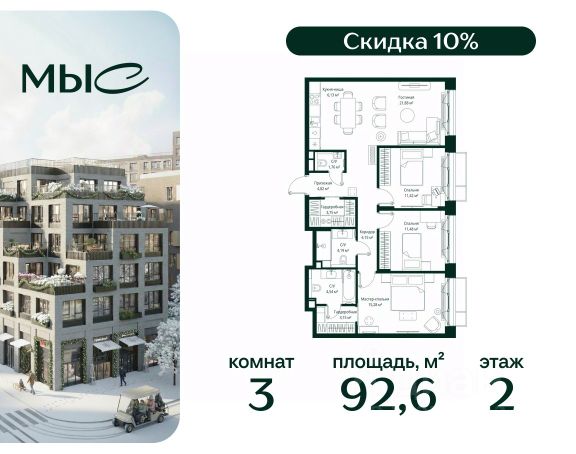 Прямая продажа от застройщика. Продаётся 3-комнатная квартира общей площадью 91.55 м² без отделки в премиальном жилом комплексе "МЫС" на 2-м этаже 12 этажного дома. Квартира расположена в корпусе "Сибирь". Проект МЫС — это, прежде всего, идеальное место для семей. В рамках проекта построят государственную школу, два детских сада и дворец спорта площадью 20 000 м2 с термальным комплексом, выплывным бассейном, фитнес-залом, теннисными, сквош и падел кортами и секциями для детей. На территории площадью, сравнимой с тремя парками Зарядье, появятся кафе и рестораны, пруд с набережной, спортивные и детские площадки, скейт-парк, лыжные и веломаршруты. Расположение: - 2 минуты до скоростной трассы М1 и Минского шоссе; - 10 минут до МКАД; - 15 минут до МЦД Лесной Городок - 20 минут до делового центра "Москва-Сити"; - 28 минут до аэропорта "Внуково". Благоустройство: - велосипедные и лыжные маршруты; - собственная набережная и парк; - лаунж-зоны в окружении природы; - беседки у очага; - дворец спорта площадью 20 000 м²; - термальный комплекс с тремя бассейнами; - 4 теннисных и падел-корта; - 6 сквош-кортов; - многофункциональный спортзал; - скейт-парк; - просторная площадь для прогулок с фонтаном; - детский клуб с творческими секциями; - гастро-доминанта; - кафе у пруда, рестораны, ритейл. Окружение - соседство с лесным фондом; - школа на 1250 мест и 2 детских сада на 350 и 255 мест; - Дубковский и Подушкинский леса, парк "Рассказовка", Мещерский парк. Действуют специальные условия при 100% оплате, подробности уточняйте у менеджера в офисе продаж.