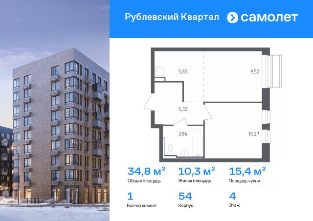 Общая площадь квартиры (включая 2 лоджии) - 122,4 кв. м.