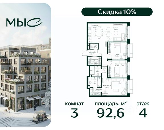 Прямая продажа от застройщика. Продаётся 4-комнатная квартира общей площадью 130.82 м² без отделки в премиальном жилом комплексе "МЫС" на 4-м этаже 12 этажного дома. Квартира расположена в корпусе "Волга". Проект МЫС — это, прежде всего, идеальное место для семей. В рамках проекта построят государственную школу, два детских сада и дворец спорта площадью 20 000 м2 с термальным комплексом, выплывным бассейном, фитнес-залом, теннисными, сквош и падел кортами и секциями для детей. На территории площадью, сравнимой с тремя парками Зарядье, появятся кафе и рестораны, пруд с набережной, спортивные и детские площадки, скейт-парк, лыжные и веломаршруты. Расположение: - 2 минуты до скоростной трассы М1 и Минского шоссе; - 10 минут до МКАД; - 15 минут до МЦД Лесной Городок - 20 минут до делового центра "Москва-Сити"; - 28 минут до аэропорта "Внуково". Благоустройство: - велосипедные и лыжные маршруты; - собственная набережная и парк; - лаунж-зоны в окружении природы; - беседки у очага; - дворец спорта площадью 20 000 м²; - термальный комплекс с тремя бассейнами; - 4 теннисных и падел-корта; - 6 сквош-кортов; - многофункциональный спортзал; - скейт-парк; - просторная площадь для прогулок с фонтаном; - детский клуб с творческими секциями; - гастро-доминанта; - кафе у пруда, рестораны, ритейл. Окружение - соседство с лесным фондом; - школа на 1250 мест и 2 детских сада на 350 и 255 мест; - Дубковский и Подушкинский леса, парк "Рассказовка", Мещерский парк. Действуют специальные условия при 100% оплате, подробности уточняйте у менеджера в офисе продаж.