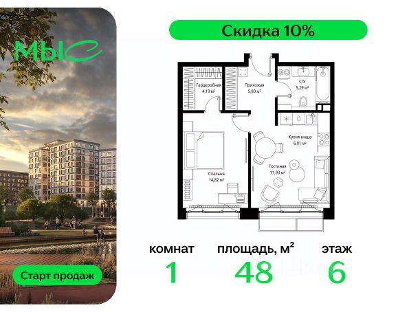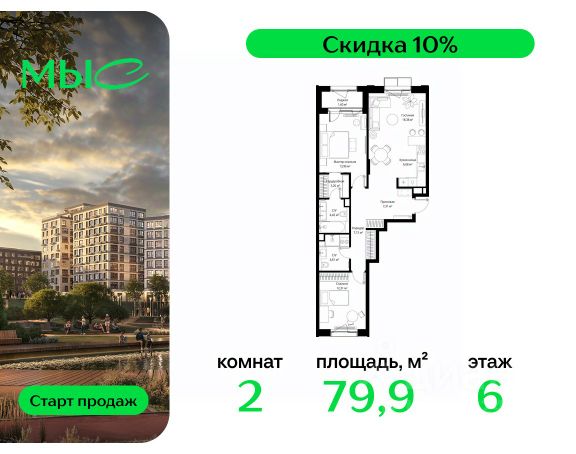 Прямая продажа от застройщика. Продаётся 3-комнатная квартира общей площадью 104.93 м² без отделки в премиальном жилом комплексе "МЫС" на 6-м этаже 12 этажного дома. Квартира расположена в корпусе "Сибирь". Проект МЫС — это, прежде всего, идеальное место для семей. В рамках проекта построят государственную школу, два детских сада и дворец спорта площадью 20 000 м2 с термальным комплексом, выплывным бассейном, фитнес-залом, теннисными, сквош и падел кортами и секциями для детей. На территории площадью, сравнимой с тремя парками Зарядье, появятся кафе и рестораны, пруд с набережной, спортивные и детские площадки, скейт-парк, лыжные и веломаршруты. Расположение: - 2 минуты до скоростной трассы М1 и Минского шоссе; - 10 минут до МКАД; - 15 минут до МЦД Лесной Городок - 20 минут до делового центра "Москва-Сити"; - 28 минут до аэропорта "Внуково". Благоустройство: - велосипедные и лыжные маршруты; - собственная набережная и парк; - лаунж-зоны в окружении природы; - беседки у очага; - дворец спорта площадью 20 000 м²; - термальный комплекс с тремя бассейнами; - 4 теннисных и падел-корта; - 6 сквош-кортов; - многофункциональный спортзал; - скейт-парк; - просторная площадь для прогулок с фонтаном; - детский клуб с творческими секциями; - гастро-доминанта; - кафе у пруда, рестораны, ритейл. Окружение - соседство с лесным фондом; - школа на 1250 мест и 2 детских сада на 350 и 255 мест; - Дубковский и Подушкинский леса, парк "Рассказовка", Мещерский парк. Действуют специальные условия при 100% оплате, подробности уточняйте у менеджера в офисе продаж.