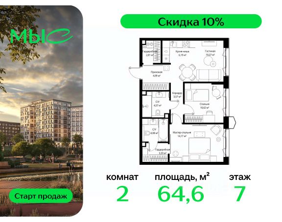 Прямая продажа от застройщика. Продаётся 1-комнатная квартира общей площадью 43.03 м² без отделки в премиальном жилом комплексе "МЫС" на 7-м этаже 12 этажного дома. Квартира расположена в корпусе "Волга". Проект МЫС — это, прежде всего, идеальное место для семей. В рамках проекта построят государственную школу, два детских сада и дворец спорта площадью 20 000 м2 с термальным комплексом, выплывным бассейном, фитнес-залом, теннисными, сквош и падел кортами и секциями для детей. На территории площадью, сравнимой с тремя парками Зарядье, появятся кафе и рестораны, пруд с набережной, спортивные и детские площадки, скейт-парк, лыжные и веломаршруты. Расположение: - 2 минуты до скоростной трассы М1 и Минского шоссе; - 10 минут до МКАД; - 15 минут до МЦД Лесной Городок - 20 минут до делового центра "Москва-Сити"; - 28 минут до аэропорта "Внуково". Благоустройство: - велосипедные и лыжные маршруты; - собственная набережная и парк; - лаунж-зоны в окружении природы; - беседки у очага; - дворец спорта площадью 20 000 м²; - термальный комплекс с тремя бассейнами; - 4 теннисных и падел-корта; - 6 сквош-кортов; - многофункциональный спортзал; - скейт-парк; - просторная площадь для прогулок с фонтаном; - детский клуб с творческими секциями; - гастро-доминанта; - кафе у пруда, рестораны, ритейл. Окружение - соседство с лесным фондом; - школа на 1250 мест и 2 детских сада на 350 и 255 мест; - Дубковский и Подушкинский леса, парк "Рассказовка", Мещерский парк.Действуют специальные условия при 100% оплате, подробности уточняйте у менеджера в офисе продаж.