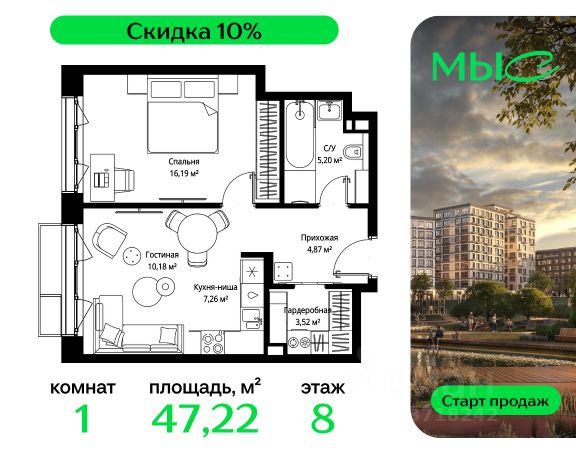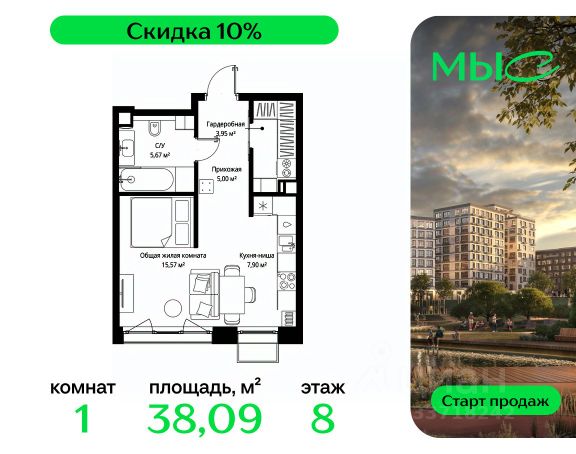 Прямая продажа от застройщика. Продаётся 2-к квартира общей площадью 64.60 м² без отделки в премиальном жилом комплексе "МЫС" на 8-м этаже 12 этажного дома. Квартира расположена в корпусе "Сибирь". ЖК "МЫС" - идеальное место для тех, кто хочет объединить городскую жизнь с близостью к природе. Здесь каждый найдет формат жилья на свой вкус: многоквартирные и клубные дома для больших семей, ценящих приватность и простор, частные дома и таунхаусы для истинных фанатов загородной жизни, которые не готовы отказываться от городского комфорта. Расположение: - 2 мин. до скоростной трассы М1 и Минского шоссе; - 10 мин. до МКАД; - 20 мин. до делового центра "Москва-Сити"; - 25 мин. до ст. метро "Рассказовка"; - 28 мин. до аэропорта "Внуково". Благоустройство: - авторские лобби; - уютные зоны ожидания и библиотека; - велосипедные и лыжные маршруты; - собственная набережная и парк; - лаунж-зоны в окружении природы; - беседки у очага; - дворец спорта площадью 20 000 м²; - термальный комплекс с тремя бассейнами; - 4 теннисных и падел-корта; - 6 сквош-кортов; - многофункциональный спортзал; - скейт-парк; - просторная площадь для прогулок с фонтаном; - детский клуб с творческими секциями; - гастро-доминанта; - кафе у пруда, рестораны, ритейл. Окружение - соседство с лесным фондом; - школа на 1250 мест и 2 детских сада на 350 и 255 мест; - резерват "Долина реки Вяземки", Дубковский и Подушкинский леса, парк "Рассказовка", Мещерский парк.Компания MR Group предлагает своим клиентам специальные условия приобретения квартир в рамках программ ипотечного кредитования от банков-партнеров.