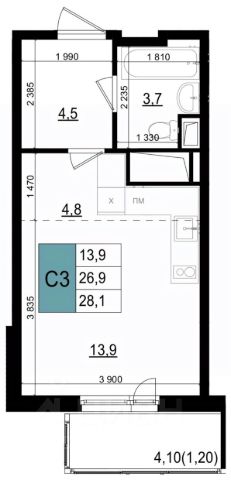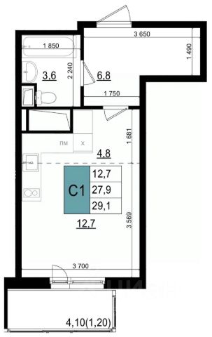 Предлагается квартира с евро ремонтом в квартале Одинбург, Квартира общей площадью 33 м² (с учетом лоджии) на 5 этаже 15-этажного дома.