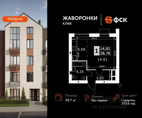 Прямая продажа от застройщика! Загородный жилой комплекс класса Комфорт Плюс. Продаётся студия номер 119 общей площадью 29.03 кв.м на 2-м этаже 4 этажного дома. Без отделки. Особенности: - Квартира доступна к покупке в Trade-In. - Линейная планировка - максимальная функциональность и удобство. - Гардеробная - удобство для хранения и организации вещей. - Вид из окна: улица - Бесплатный трансфер до загородного поселка - 5 минут до МЦД-4 - Отличный вариант для проживания или инвестиций - Двухуровневая квартира - пространство и стиль в одном. - Своя благоустроенная набережная в поселке, - Престижная школа и детский сад на территории, - Закрытая территория и видеонаблюдение - Собственный парк вдоль набережной - Круглосуточная охрана - Зона с беседками и барбекю - Живописная река в пешей доступности - Квартиры с высокими потолками 7 м - Малоэтажный квартал у реки Квартиру можно приобрести с предчистовой (White box) и чистовой отделкой. Вам не придётся заниматься черновыми работами, а трудоемкий ремонт мы возьмем на себя! Расположение комплекса: Для создания гармоничного пространства в проекте собрана вся необходимая инфраструктура, начиная от закрытых дворов с детскими площадками и зонами отдыха, тренажерного спортивного зала с мини-саунами и детской комнаты, до благоустроенной набережной, где разместится большой игровой хаб с прогулочным маршрутом и зоной барбекю. Благоприятная роза ветров и отсутствие производств влияют на качество воздуха. Вода и природа успокаивают и заряжают энергией. В жилом комплексе "Жаворонки Клаб" создана современная образовательная среда с полным циклом обучения - от детского сада до старших классов. Школа 560 мест с инновационным оснащением. Детский сад 260 мест. Все образовательные учреждения будут муниципальными и записаться в них сможет каждый маленький житель комплекса. Дорога до школы или детского сада займет не более 5 минут. Ваш ребенок поспит подольше и не опоздает к первому уроку! Здесь также будет расположена муниципальная поликлиника, административно-бытовой комплекс, магазины и кафе. Транспортная доступность: В 30 м от территории ЖК находятся остановки общественного транспорта, откуда можно добраться до ближайших железнодорожных станций Санино (5 мин.), Крёкшино (7 мин.) и Жаворонки (7 мин.), а в 10 минутах - остановки маршрутов, идущих до станций метро Саларьево и Парк Победы. Съезд на Минское шоссе расположен в 700 м от ЖК. Внутренняя инфраструктура: В рамках проекта будут построены муниципальные детский сад и общеобразовательная школа, административно-бытовой комплекс (магазины формата "у дома", точки бытовых услуг, street-retail, кафе, кофейня, аптека, а также многофункциональный торгово-развлекательный центр с ФОК и амбулаторией. Для удобства и комфорта жителей, когда все "под рукой" мы разместили в ЖК бесплатный тренажерный зал с раздевалками и мини-саунами. Сюда можно приходить самостоятельно или с личным тренером для функциональной тренировки. Для детей обустроена игровая с множеством развивающих