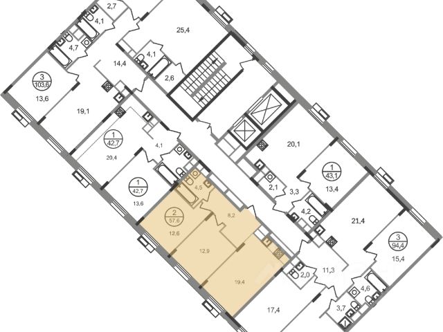Продаётся 2-комнатная квартира 373, площадью 51,13 м², на 2 этаже в ЖК "Притяжение Сити" корпус 8. Стоимость — от 10761564 руб. Квартира без отделки, планировка односторонняя, окна во двор.