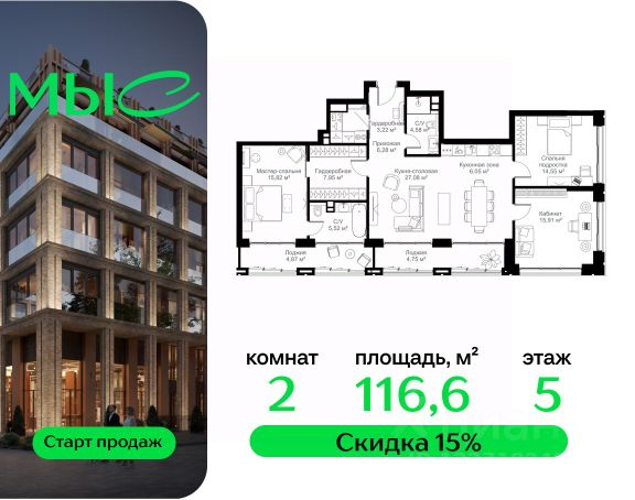 Прямая продажа от застройщика. Продаётся 1-комнатная квартира общей площадью 44.25 м² без отделки в премиальном жилом комплексе "МЫС" на 2-м этаже 12 этажного дома. Квартира расположена в корпусе "Волга". Проект МЫС — это, прежде всего, идеальное место для семей. В рамках проекта построят государственную школу, два детских сада и дворец спорта площадью 20 000 м2 с термальным комплексом, выплывным бассейном, фитнес-залом, теннисными, сквош и падел кортами и секциями для детей. На территории площадью, сравнимой с тремя парками Зарядье, появятся кафе и рестораны, пруд с набережной, спортивные и детские площадки, скейт-парк, лыжные и веломаршруты. Расположение: - 2 минуты до скоростной трассы М1 и Минского шоссе; - 10 минут до МКАД; - 15 минут до МЦД Лесной Городок - 20 минут до делового центра "Москва-Сити"; - 28 минут до аэропорта "Внуково". Благоустройство: - велосипедные и лыжные маршруты; - собственная набережная и парк; - лаунж-зоны в окружении природы; - беседки у очага; - дворец спорта площадью 20 000 м²; - термальный комплекс с тремя бассейнами; - 4 теннисных и падел-корта; - 6 сквош-кортов; - многофункциональный спортзал; - скейт-парк; - просторная площадь для прогулок с фонтаном; - детский клуб с творческими секциями; - гастро-доминанта; - кафе у пруда, рестораны, ритейл. Окружение - соседство с лесным фондом; - школа на 1250 мест и 2 детских сада на 350 и 255 мест; - Дубковский и Подушкинский леса, парк "Рассказовка", Мещерский парк. Действуют специальные условия при 100% оплате, подробности уточняйте у менеджера в офисе продаж. Продам квартиру в новостройке в городском округе Одинцовском Московской области.