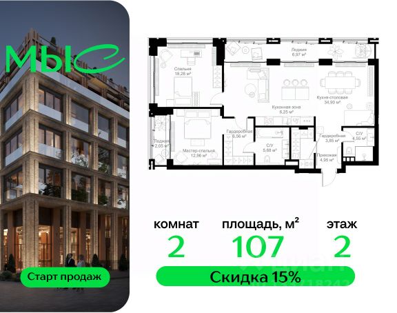 Прямая продажа от застройщика. Продаётся 2-комнатная квартира общей площадью 78.86 м² без отделки в премиальном жилом комплексе "МЫС" на 2-м этаже 12 этажного дома. Квартира расположена в корпусе "Волга". Проект МЫС — это, прежде всего, идеальное место для семей. В рамках проекта построят государственную школу, два детских сада и дворец спорта площадью 20 000 м2 с термальным комплексом, выплывным бассейном, фитнес-залом, теннисными, сквош и падел кортами и секциями для детей. На территории площадью, сравнимой с тремя парками Зарядье, появятся кафе и рестораны, пруд с набережной, спортивные и детские площадки, скейт-парк, лыжные и веломаршруты. Расположение: - 2 минуты до скоростной трассы М1 и Минского шоссе; - 10 минут до МКАД; - 15 минут до МЦД Лесной Городок - 20 минут до делового центра "Москва-Сити"; - 28 минут до аэропорта "Внуково". Благоустройство: - велосипедные и лыжные маршруты; - собственная набережная и парк; - лаунж-зоны в окружении природы; - беседки у очага; - дворец спорта площадью 20 000 м²; - термальный комплекс с тремя бассейнами; - 4 теннисных и падел-корта; - 6 сквош-кортов; - многофункциональный спортзал; - скейт-парк; - просторная площадь для прогулок с фонтаном; - детский клуб с творческими секциями; - гастро-доминанта; - кафе у пруда, рестораны, ритейл. Окружение - соседство с лесным фондом; - школа на 1250 мест и 2 детских сада на 350 и 255 мест; - Дубковский и Подушкинский леса, парк "Рассказовка", Мещерский парк. Действуют специальные условия при 100% оплате, подробности уточняйте у менеджера в офисе продаж.