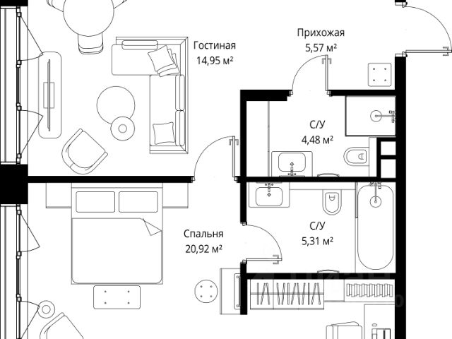 Продается двухкомнатная квартира в девятиэтажном монолитном доме жилого комплекса "Резиденции Сколково". Общая площадь квартиры - 57,6 кв. м, этаж 4 из 9. Срок сдачи - 3 квартал 2026 года. ЖК "Резиденции Сколково" - это современный проект бизнес-класса, расположенный в престижном районе Сколково, у западной границы Москвы. Транспортная доступность: - 0 км от МКАД - 10 минут на личном авто до метро "Озёрная" Солнцевской линии - 15 минут на личном авто до Москва-Сити по Кутузовскому проспекту - 20 минут на личном авто до центра по проспекту Генерала Дорохова - 24 минут на личном авто до центра по Мичуринскому проспекту Безопасность: Огороженная, закрытая территория, круглосуточное видеонаблюдение, контроль доступа во внутренний двор. Благоустройство и инфраструктура: Масштабное озеленение в концепции "двора-парка" и множество площадок отдыха для взрослых и детей. В 5 минутах ходьбы расположен Мещерский лесопарк. В жилом комплексе уже построены и работают 2 муниципальных детских сада с бассейном, планируется строительство 1 школы. В непосредственной близости - частные и муниципальные детские сады и школы, кафе и рестораны, продуктовые магазины, салоны красоты и другие готовые объекты городской инфраструктуры. Авторская архитектура: Авторская концепция архитектуры, входные группы на уровне земли. Для удобства жителей на первых этажах предусмотрены помещения для колясок и на -1 этажах для хранения велосипедов.