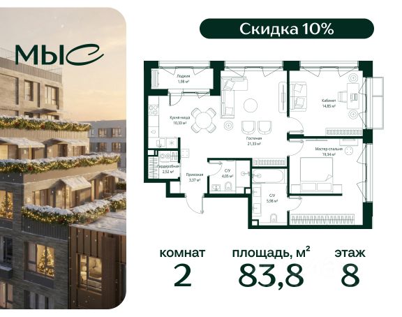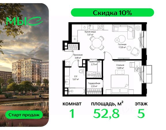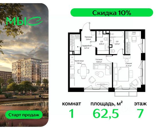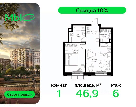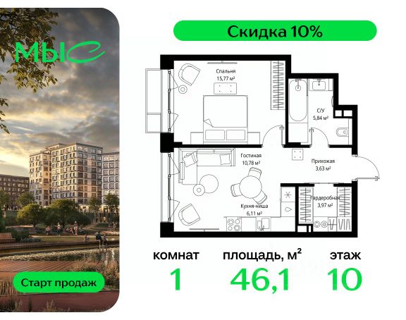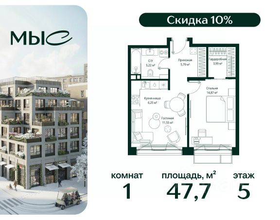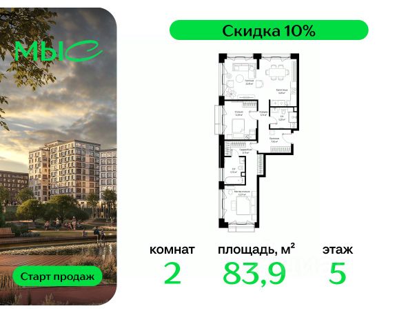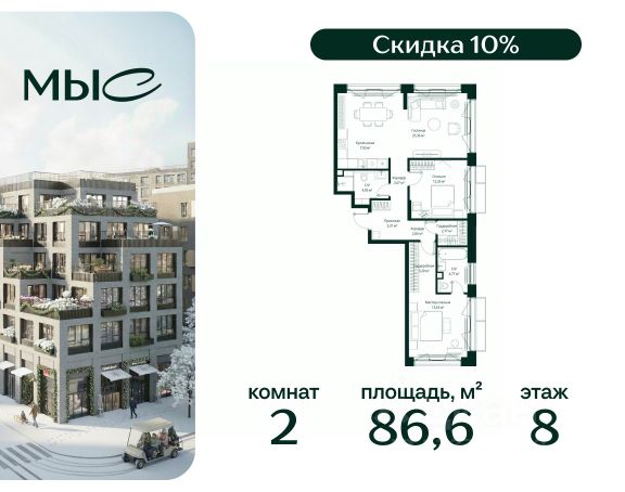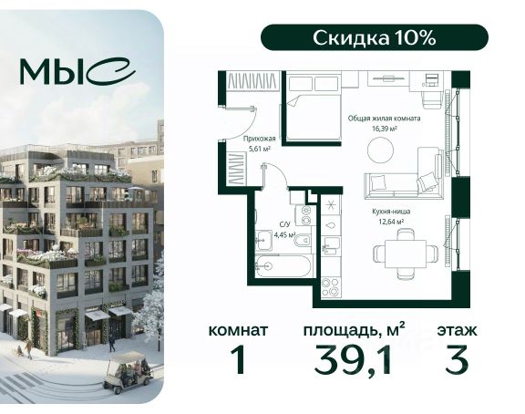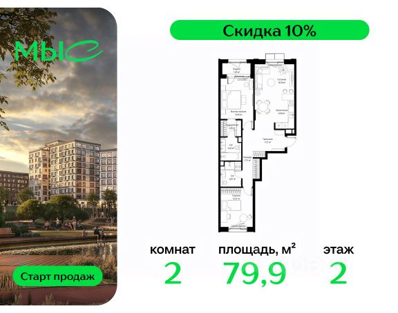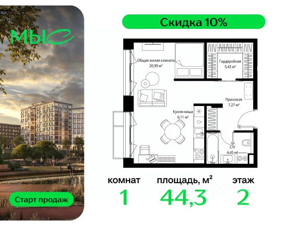 Прямая продажа от застройщика. Продаётся 1-комнатная квартира общей площадью 44.25 м² без отделки в премиальном жилом комплексе "МЫС" на 2-м этаже 12 этажного дома. Квартира расположена в корпусе "Волга". Проект МЫС — это, прежде всего, идеальное место для семей. В рамках проекта построят государственную школу, два детских сада и дворец спорта площадью 20 000 м2 с термальным комплексом, выплывным бассейном, фитнес-залом, теннисными, сквош и падел кортами и секциями для детей. На территории площадью, сравнимой с тремя парками Зарядье, появятся кафе и рестораны, пруд с набережной, спортивные и детские площадки, скейт-парк, лыжные и веломаршруты. Расположение: - 2 минуты до скоростной трассы М1 и Минского шоссе; - 10 минут до МКАД; - 15 минут до МЦД Лесной Городок - 20 минут до делового центра "Москва-Сити"; - 28 минут до аэропорта "Внуково". Благоустройство: - велосипедные и лыжные маршруты; - собственная набережная и парк; - лаунж-зоны в окружении природы; - беседки у очага; - дворец спорта площадью 20 000 м²; - термальный комплекс с тремя бассейнами; - 4 теннисных и падел-корта; - 6 сквош-кортов; - многофункциональный спортзал; - скейт-парк; - просторная площадь для прогулок с фонтаном; - детский клуб с творческими секциями; - гастро-доминанта; - кафе у пруда, рестораны, ритейл. Окружение - соседство с лесным фондом; - школа на 1250 мест и 2 детских сада на 350 и 255 мест; - Дубковский и Подушкинский леса, парк "Рассказовка", Мещерский парк. Действуют специальные условия при 100% оплате, подробности уточняйте у менеджера в офисе продаж. Продам квартиру в новостройке в городском округе Одинцовском Московской области.