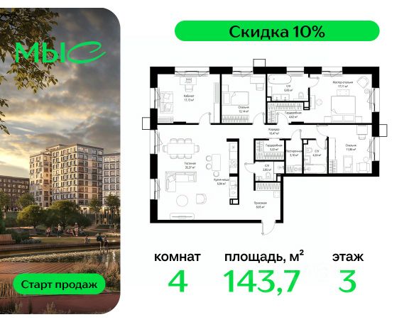 Прямая продажа от застройщика. Продаётся 1-комнатная квартира общей площадью 37.63 м² без отделки в премиальном жилом комплексе "МЫС" на 8-м этаже 12 этажного дома. Квартира расположена в корпусе "Волга". Проект МЫС — это, прежде всего, идеальное место для семей. В рамках проекта построят государственную школу, два детских сада и дворец спорта площадью 20 000 м2 с термальным комплексом, выплывным бассейном, фитнес-залом, теннисными, сквош и падел кортами и секциями для детей. На территории площадью, сравнимой с тремя парками Зарядье, появятся кафе и рестораны, пруд с набережной, спортивные и детские площадки, скейт-парк, лыжные и веломаршруты. Расположение: - 2 минуты до скоростной трассы М1 и Минского шоссе; - 10 минут до МКАД; - 15 минут до МЦД Лесной Городок - 20 минут до делового центра "Москва-Сити"; - 28 минут до аэропорта "Внуково". Благоустройство: - велосипедные и лыжные маршруты; - собственная набережная и парк; - лаунж-зоны в окружении природы; - беседки у очага; - дворец спорта площадью 20 000 м²; - термальный комплекс с тремя бассейнами; - 4 теннисных и падел-корта; - 6 сквош-кортов; - многофункциональный спортзал; - скейт-парк; - просторная площадь для прогулок с фонтаном; - детский клуб с творческими секциями; - гастро-доминанта; - кафе у пруда, рестораны, ритейл. Окружение - соседство с лесным фондом; - школа на 1250 мест и 2 детских сада на 350 и 255 мест; - Дубковский и Подушкинский леса, парк "Рассказовка", Мещерский парк. Действуют специальные условия при 100% оплате, подробности уточняйте у менеджера в офисе продаж. Продам квартиру в новостройке в городском округе Одинцовском Московской области.