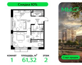 Прямая продажа от застройщика. Продаётся 2-комнатная квартира общей площадью 64.60 м² без отделки в премиальном жилом комплексе "МЫС" на 2-м этаже 12 этажного дома. Квартира расположена в корпусе "Сибирь". ЖК "МЫС" - идеальное место для тех, кто хочет объединить городскую жизнь с близостью к природе. Здесь каждый найдет формат жилья на свой вкус: многоквартирные и клубные дома для больших семей, ценящих приватность и простор, частные дома и таунхаусы для истинных фанатов загородной жизни, которые не готовы отказываться от городского комфорта. Расположение: - 2 мин. до скоростной трассы М1 и Минского шоссе; - 10 мин. до МКАД; - 20 мин. до делового центра "Москва-Сити"; - 25 мин. до ст. метро "Рассказовка"; - 28 мин. до аэропорта "Внуково". Благоустройство: - авторские лобби; - уютные зоны ожидания и библиотека; - велосипедные и лыжные маршруты; - собственная набережная и парк; - лаунж-зоны в окружении природы; - беседки у очага; - дворец спорта площадью 20 000 м²; - термальный комплекс с тремя бассейнами; - 4 теннисных и падел-корта; - 6 сквош-кортов; - многофункциональный спортзал; - скейт-парк; - просторная площадь для прогулок с фонтаном; - детский клуб с творческими секциями; - гастро-доминанта; - кафе у пруда, рестораны, ритейл. Окружение - соседство с лесным фондом; - школа на 1250 мест и 2 детских сада на 350 и 255 мест; - резерват "Долина реки Вяземки", Дубковский и Подушкинский леса, парк "Рассказовка", Мещерский парк.Компания MR Group предлагает своим клиентам специальные условия приобретения квартир в рамках программ ипотечного кредитования от банков-партнеров. Продается квартира первичка в деревне Ликино Московской области.