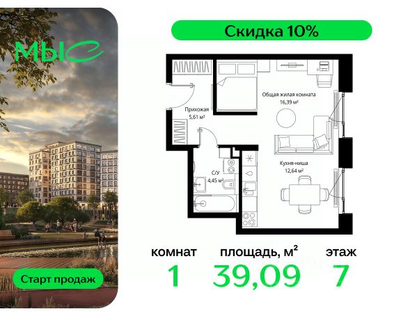 Прямая продажа от застройщика. Продаётся 1-комнатная квартира общей площадью 52.82 м² без отделки в премиальном жилом комплексе "МЫС" на 5-м этаже 12 этажного дома. Квартира расположена в корпусе "Волга". Проект МЫС — это, прежде всего, идеальное место для семей. В рамках проекта построят государственную школу, два детских сада и дворец спорта площадью 20 000 м2 с термальным комплексом, выплывным бассейном, фитнес-залом, теннисными, сквош и падел кортами и секциями для детей. На территории площадью, сравнимой с тремя парками Зарядье, появятся кафе и рестораны, пруд с набережной, спортивные и детские площадки, скейт-парк, лыжные и веломаршруты. Расположение: - 2 минуты до скоростной трассы М1 и Минского шоссе; - 10 минут до МКАД; - 15 минут до МЦД Лесной Городок - 20 минут до делового центра "Москва-Сити"; - 28 минут до аэропорта "Внуково". Благоустройство: - велосипедные и лыжные маршруты; - собственная набережная и парк; - лаунж-зоны в окружении природы; - беседки у очага; - дворец спорта площадью 20 000 м²; - термальный комплекс с тремя бассейнами; - 4 теннисных и падел-корта; - 6 сквош-кортов; - многофункциональный спортзал; - скейт-парк; - просторная площадь для прогулок с фонтаном; - детский клуб с творческими секциями; - гастро-доминанта; - кафе у пруда, рестораны, ритейл. Окружение - соседство с лесным фондом; - школа на 1250 мест и 2 детских сада на 350 и 255 мест; - Дубковский и Подушкинский леса, парк "Рассказовка", Мещерский парк.Действуют специальные условия при 100% оплате, подробности уточняйте у менеджера в офисе продаж. Продается квартира первичка в деревне Ликино Московской области.