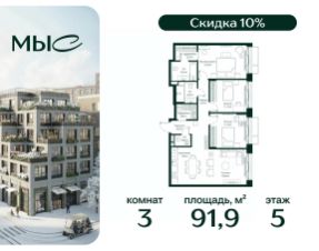 Прямая продажа от застройщика. Продаётся 3-комнатная квартира общей площадью 91.55 м² без отделки в премиальном жилом комплексе "МЫС" на 2-м этаже 12 этажного дома. Квартира расположена в корпусе "Сибирь". Проект МЫС — это, прежде всего, идеальное место для семей. В рамках проекта построят государственную школу, два детских сада и дворец спорта площадью 20 000 м2 с термальным комплексом, выплывным бассейном, фитнес-залом, теннисными, сквош и падел кортами и секциями для детей. На территории площадью, сравнимой с тремя парками Зарядье, появятся кафе и рестораны, пруд с набережной, спортивные и детские площадки, скейт-парк, лыжные и веломаршруты. Расположение: - 2 минуты до скоростной трассы М1 и Минского шоссе; - 10 минут до МКАД; - 15 минут до МЦД Лесной Городок - 20 минут до делового центра "Москва-Сити"; - 28 минут до аэропорта "Внуково". Благоустройство: - велосипедные и лыжные маршруты; - собственная набережная и парк; - лаунж-зоны в окружении природы; - беседки у очага; - дворец спорта площадью 20 000 м²; - термальный комплекс с тремя бассейнами; - 4 теннисных и падел-корта; - 6 сквош-кортов; - многофункциональный спортзал; - скейт-парк; - просторная площадь для прогулок с фонтаном; - детский клуб с творческими секциями; - гастро-доминанта; - кафе у пруда, рестораны, ритейл. Окружение - соседство с лесным фондом; - школа на 1250 мест и 2 детских сада на 350 и 255 мест; - Дубковский и Подушкинский леса, парк "Рассказовка", Мещерский парк. Действуют специальные условия при 100% оплате, подробности уточняйте у менеджера в офисе продаж. Продается квартира первичка в деревне Ликино Московской области.