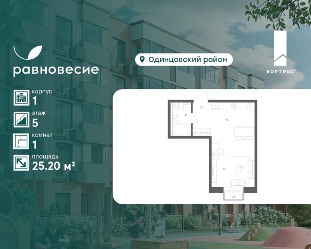 Продаётся квартира (СТУДИЯ) в монолитном доме комфорт класса ЖК "Равновесие" Одинцовском районе Московской области в окружении лесных массивов. Малоэтажность домов подчеркивает загородный стиль жизни. Квартира с ПАТИО — это уникальная возможность совместить комфорт загородной жизни и удобства городской квартиры.
