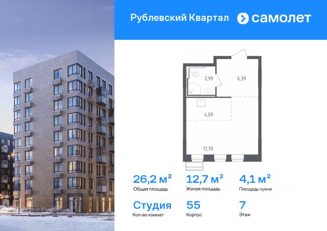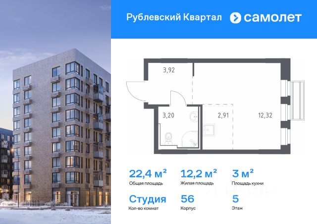 Строим кварталы для жизни с заботой о будущем. Предлагается квартира студия комфорт-класса 22,41 кв.м в корпусе 56 на 7 этаже, в ЖК "Рублевский Квартал" Квартира с предчистовой отделкой. Доступность дополнительных опций уточняйте у застройщика. Приобрести квартиру возможно по специальным акциям от застройщика, с текущими условиями акций можно ознакомиться в блоке "Акций". Цена динамическая и может отличаться, уточняйте актуальность у застройщика. Жилой комплекс "Рублевский Квартал" на западе Москвы окружен Подушкинским и Дубковским лесами. Рядом ж/д станция Усово и МЦД-1 "Одинцово". На территории комплекса — школа, детский сад, поликлиника и торговый центр. Архитектура с переменной этажностью от 3 до 12 этажей гармонично вписывается в природу. Закрытый двор-парк, кленовые аллеи и игровые зоны создают уют. Квартиры с отделкой и живописными видами на лес. Квартира-студия в новостройке в селе Лайково Московской области.