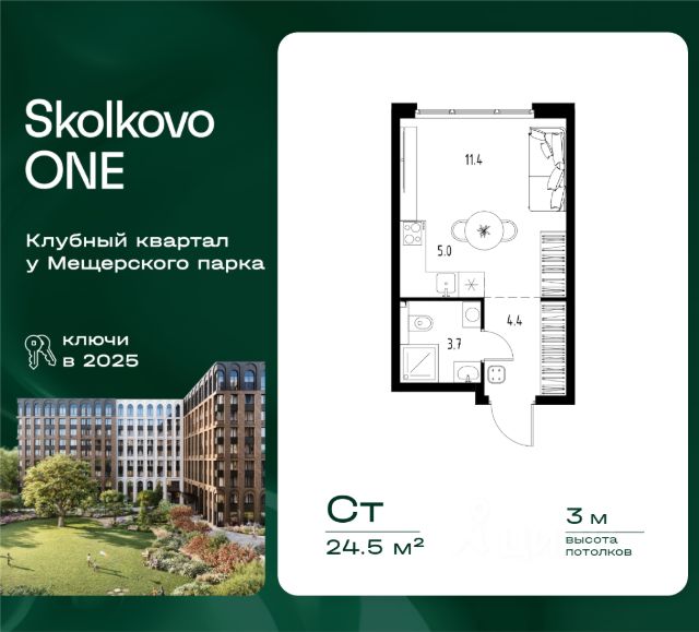 Прямая продажа от застройщика! Жилой комплекс в двух шагах от Мещерского парка Квартира в корпусе 4 | 24,3 м² | 8 этаж из 9 | Дом сдан Откройте для себя новый уровень жизни в ЖК "Skolkovo ONE" — единственном жилом комплексе с собственным приватным выходом в Мещерский парк. Преимущества ЖК "Skolkovo ONE": Эксклюзивная локация: Живите в гармонии с природой, не отказываясь от ритма мегаполиса: Мещерский парк (465 га) в двух шагах от дома — ваши персональные "легкие" в черте города. 5 минут до Инновационного центра "Сколково" — соседство с технологиями будущего. 20 минут до Москва-Сити — идеальный баланс уединения и доступности. 10 минут до метро "Озерная", "Говорово" Бизнес-класс в английском стиле: Клубный формат в духе английской архитектуры с панорамным остеклением и французскими балконами. Комфортная этажность, 9 этажей. Фасады из натуральных материалов. Smart-планировки: мастер-спальни, два санузла, гардеробные. Панорамные виды на лес и парк из окон. Квартиры без отделки — реализуйте собственный стиль и воплотите любые дизайнерские решения. Комфорт и сервис: Консьерж-сервис, дизайнерские лобби с зонами для работы и отдыха. Дендропарк во дворе, детская инфраструктура и продуманные общественные пространства. ЖК "Skolkovo ONE" — клубный жилой комплекс для тех, кто ценит баланс между динамикой мегаполиса и уединением природы. Узнайте подробности и забронируйте свою квартиру у наших менеджеров!