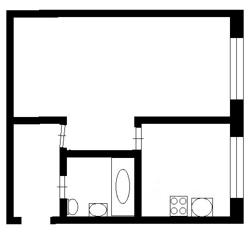 Кухня просторная, оборудована газовой плитой. В комнате установлен вместительный шкаф-купе, который позволяет удобно хранить вещи. Дом оснащён мусоропроводом, а также двумя пассажирскими лифтами и одним грузовым.