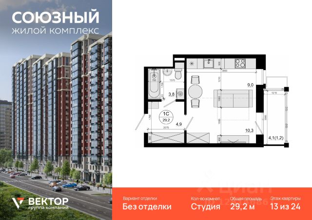 Продается квартира-студия площадью 29,2 кв.м на 13 этаже 24 этажного дома в ЖК "Союзный" от федерального девелопера ГК "Вектор". Жилой комплекс "Союзный" - это квартал из 6 монолитных домов комфорт-класса высотой до 25 этажей. Добраться до столицы из "Союзного" удобно как на автомобиле, так и на общественном транспорте. В трех минутах ходьбы от комплекса находится автобусная остановка, откуда ходят маршруты до станций метро "Киевская", "Парк Победы" и "Юго-Западная". До станции МЦД-1 "Одинцово" можно дойти пешком за 15 минут или доехать на наземном транспорте за то же время. Автовладельцы за 20 минут доберутся до МКАД по Северному обходу Одинцово, Боровскому, Минскому и Можайскому шоссе. Территория жилого комплекса включает детский сад на 245 мест (срок сдачи — 4 квартал 2025 года), торгово-развлекательный центр, поликлиники, спортивный парк и многоуровневые паркинги: открытый, подземный и комбинированный с эксплуатируемой кровлей. Во дворах обустраиваются игровые комплексы с безопасным покрытием, спортивные площадки, зоны отдыха для взрослых и площадки для занятий йогой. Озеленение территории включает деревья, кустарники и газоны. На первых этажах домов предусмотрены коммерческие помещения, где смогут открыться магазины, сервисные службы, кафе, фитнес-студии и салоны красоты. В шаговой доступности уже работают детские сады, школы, медицинские учреждения, аптеки, супермаркеты, банки, кафе и торговые центры. Недалеко находятся кинотеатр "Юность", Ледовый дворец, сквер Союзный и Глазынинский пруд с прогулочной зоной, качелями и спортивными площадками. Проект "Союзного" разработан российским архитектурным бюро MEZON PRO — лауреатом престижных премий "Urban Awards", "Золотое Сечение", "Лидер рынка недвижимости" и "Green Zoom". Дома строятся по монолитно-кирпичной технологии с использованием керамического кирпича для фасадов. В просторных холлах предусмотрены большие окна, создающие естественное освещение. В каждом корпусе запроектировано три лифта: один пассажирский и два грузопассажирских, что обеспечивает комфорт при переезде и повседневном использовании. Ассортимент квартир включает студии, одно-, двух-, трех- и четырехкомнатные варианты свободной планировки площадью от 24,5 до 88,1 кв. м. Есть решения с лоджиями, двумя санузлами и разной ориентацией окон — во двор или на улицу. Высота потолков в стандартных квартирах составляет 2,8 м, в отдельных вариантах — до 4,7 м. Покупателям предлагаются разные варианты отделки: предчистовая, позволяющая самостоятельно выбрать стиль интерьера, и готовые дизайнерские решения "под ключ". Жилой комплекс "Союзный" расположен в городе Одинцово Московской области, всего в 8 км от МКАД. Район отличается благоприятной экологией: Одинцовский округ удостоен медали "Экологически чистый район" и внесен в официальный Реестр экологически чистых территорий. Продам квартиру-студию с балконом в Одинцово.