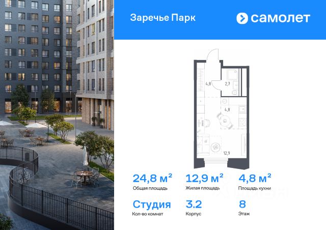Купить квартиру-студию рядом со школой на улице Луговая в поселке городского типа Заречье