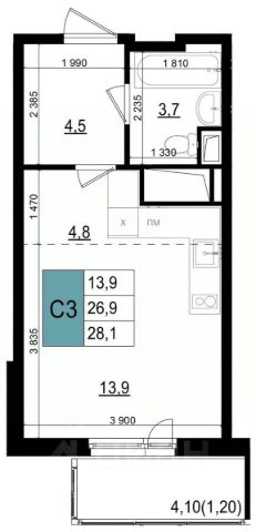 Продаётся студия в строящемся доме (Дом 1), срок сдачи: III-кв. 2026, общей площадью 27.9 кв.м., на 3 этаже. Новый жилой дом от застройщика "Атлантис Скай Сити" расположен по адресу Московская область, Одинцовский район, г. Одинцово, микрорайон 6 - 6А