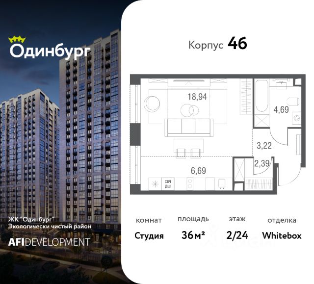 Предлагаем вашему вниманию уютную студию общей площадью 36 кв.м на 2 этаже в новой очереди строительства ЖК "Одинбург". Этот обновленный проект от компании AFI Development включает в себя актуальные архитектурные решения и функциональные планировки. Для всех действует предложение от застройщика Назови свою скидку, подробности акции уточняйте у менеджеров отдела продаж. Новый Одинбург - это: • Возможность выбора между квартирами без отделки и с базовой отделкой (White Box). • Высокие потолки 2.8 м (в чистоте). • Просторные кухни-гостиные до 27 кв.м. • Балкон или лоджия в каждой квартире с панорамным остеклением. • Нишы для хранения вещей в прихожей и отдельные гардеробные. • Несколько санузлов для больших семей. • Живописный вид из окон на лес и городские пейзажи. И даже больше, чем комфорт-класс: • Монолитные дома с вентилируемым фасадом и облицовкой из декоративного камня. • Дизайнерская отделка мест общего пользования с мебелью и архитектурная подсветка фасадов. • На первых этажах предусмотрено помещение консьержа 24/7 и колясочная. • Развитая инфраструктура: в шаговой доступности расположено 6 детских садов, школы и лицей, магазины, кафе, салоны красоты и спортивные объекты. • Огороженная территория: двор без машин для безопасного отдыха и прогулок с детьми разных возрастов. • Машиноместа в отапливаемом подземном паркинге с доступом из лифта, в многоуровневом наземном паркинге и гостевые парковочные места. • Транспортная доступность: 7 минут до МЦД Одинцово, 10 минут до МКАД, 17 минут до центра Москвы по трассе М-1. Пространство для жизни: • Безопасность: наличие системы видеонаблюдения обеспечивает спокойствие и защиту вашего жилья. • Природа рядом: комплекс граничит с Подушкинским и Дубковским лесами, что позволяет наслаждаться свежим воздухом. • Большое количество спортивных объектов: ледовый дворец, волейбольный центр, центр горнолыжного спорта и школы Олимпийского резерва РФ и целый спортивный парк имени Героя России Ларисы Лазутиной. • Коммьюнити соседей со схожим образом жизни. Не упустите шанс стать владельцем квартиры в одном из самых перспективных жилых комплексов Подмосковья на выгодных условиях! Звоните прямо сейчас, чтобы узнать подробности и записаться на просмотр. Продается квартира-студия в Одинцово.