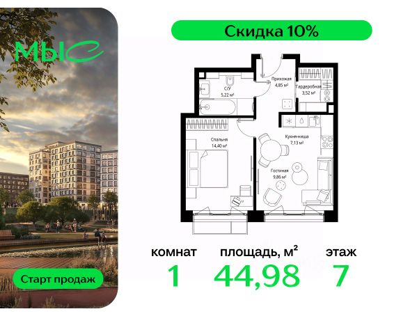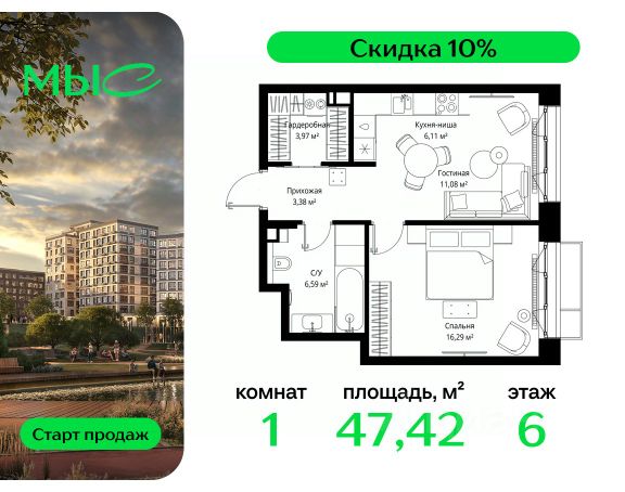 Прямая продажа от застройщика. Продаётся 1-комнатная квартира общей площадью 37.63 м² без отделки в премиальном жилом комплексе "МЫС" на 4-м этаже 12 этажного дома. Квартира расположена в корпусе "Сибирь". Проект МЫС — это, прежде всего, идеальное место для семей. В рамках проекта построят государственную школу, два детских сада и дворец спорта площадью 20 000 м2 с термальным комплексом, выплывным бассейном, фитнес-залом, теннисными, сквош и падел кортами и секциями для детей. На территории площадью, сравнимой с тремя парками Зарядье, появятся кафе и рестораны, пруд с набережной, спортивные и детские площадки, скейт-парк, лыжные и веломаршруты. Расположение: - 2 минуты до скоростной трассы М1 и Минского шоссе; - 10 минут до МКАД; - 15 минут до МЦД Лесной Городок - 20 минут до делового центра "Москва-Сити"; - 28 минут до аэропорта "Внуково". Благоустройство: - велосипедные и лыжные маршруты; - собственная набережная и парк; - лаунж-зоны в окружении природы; - беседки у очага; - дворец спорта площадью 20 000 м²; - термальный комплекс с тремя бассейнами; - 4 теннисных и падел-корта; - 6 сквош-кортов; - многофункциональный спортзал; - скейт-парк; - просторная площадь для прогулок с фонтаном; - детский клуб с творческими секциями; - гастро-доминанта; - кафе у пруда, рестораны, ритейл. Окружение - соседство с лесным фондом; - школа на 1250 мест и 2 детских сада на 350 и 255 мест; - Дубковский и Подушкинский леса, парк "Рассказовка", Мещерский парк.Действуют специальные условия при 100% оплате, подробности уточняйте у менеджера в офисе продаж.