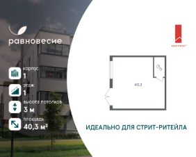 Продаётся коммерческое помещение на 1-м этаже ЖК комфорт-класса "Равновесие" ОТ ЗАСТРОЙЩИКА общей площадью 40,30 кв.м и стоимостью 9269000 рублей.