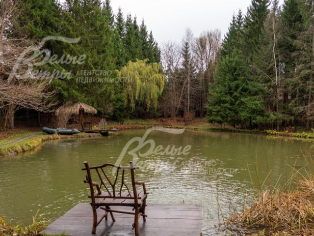 Благоустройство участка: на территории участка реализован дорогостоящий проект ландшафтного дизайна с сохранёнными вековыми хвойными деревьями. Дорожки вымощены архитектурным бетоном с имитацией среза пенька (толщина 5 см), выполнено декоративное освещение, высажены плодовые деревья и кустарники, в том числе яблони, смородина. Ландшафт украшают малые архитектурные формы. Точка притяжения на участке собственный искусственный зарыбленный пруд размером 5026 м и глубиной 3 м. В пруду такие виды рыб как: осетр, форель, черный амур, толстолобик, сом, карп, сазан, карась, лещ, окунь, линь. В комплекс входят система аэрации для поддержания оптимального уровня кислорода, собственная скважина с подогревом воды для регулярного пополнения водоёма и скиммер, который автоматически собирает листья и другой поверхностный мусор. Также на участке есть каскад небольших прудов с кувшинками, ручьём и мостиком. По участку и вокруг дома проложена дренажная система.
