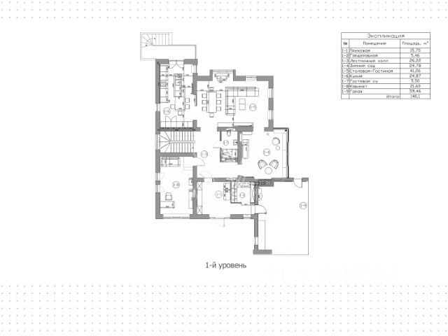 Усово-8. Новый загородный дом площадью 472 м² расположен на полевом участке 8 соток. Архитектура дома подчеркнута панорамным остеклением в пол, благодаря которому внутреннее пространство наполнено воздухом и солнечными лучами. Современные дизайнерские интерьеры оформлены в светлых нейтральных тонах и дополнены стильной мебелью, встроенной бытовой техникой и качественной сантехникой. Климатический комфорт обеспечивает система кондиционирования. Планировка первого уровня включает просторную гостиную-столовую, кухню с функциональным островом, зимний сад с камином и кабинет. На втором этаже расположены три комфортабельные спальни. На цокольном уровне разместили SPA-зону с сауной, массажным кабинетом, душевой и гардеробной, а также блок для персонала с кухней и спальней. Дополнительное преимущество — встроенный гараж на две машины. Участок благоустроен — аккуратный газон и ландшафтный дизайн создают гармоничное пространство для отдыха. Поэтажное описание Цоколь: холл, SPA-зона с сауной, душевой, массажным кабинетом и гардеробной, блок для персонала со спальней, кухней, санузлом, постирочной и котельной. 1-й уровень: прихожая, холл, гардеробная, санузел, кабинет, кухня, гостиная-столовая, зимний сад, гараж. 2-й уровень: холл, мастер-спальня с гардеробной, санузлом и балконом, спальня с санузлом, спальня с гардеробной, кабинетом, санузлом и балконом. Комментарий эксперта. Меня зовут Юлия Симон — брокер компании Whitewill. Я отвечаю за продажу этого лота. Свяжитесь со мной, чтобы получить расширенную презентацию, больше фотографий или договориться о просмотре. Могу провести экскурсию по локации и познакомить вас с этим лотом. ID 13 425.