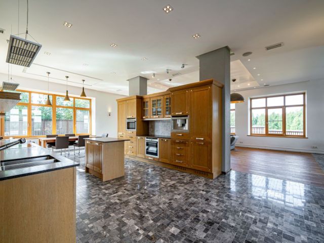 - Площадь дома общая 540 кв.м., по БТИ 389 кв.м. Дом сдан в эксплуатацию в 2005 г. (5 спален, 5 санузлов, сауна, постирочная, гладильная, каминный зал, обеденный зал, кабинет, комната отдыха, холодная комната, тренажерный зал, бассейн, винный погреб, веранда, кухня-столовая, прихожая, гардероб, балкон и пр.)