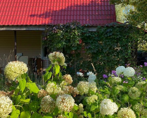 Оформлены грядки, есть теплица. Строения на участке: Дом 48 м2. Фундамент столбчатый (заливали бетоном), обшит плоским шифером, дом деревянный с утеплителем, поверх вагонки обшит дополнительно утеплением и сайдингом.