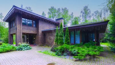 ID 13 940. Лесной ручей-3. Загородный коттедж площадью 390 м² расположен на живописном лесном участке 26 соток. Фасад выполнен в стиле легендарного американского архитектора Фрэнка Ллойда Райта. Горизонтальные линии здания и крыша с широкими свесами создают эффект органичного единения с природным ландшафтом, словно продолжая его. Интерьеры, оформленные в спокойной цветовой гамме, представляют собой гармоничное сочетание природных фактур камня и дерева. Элегантные витражи, изящные светильники, картины, предметы декора и мягкий текстиль наполняют пространство уютом. Мебель и бытовая техника обеспечивают комфорт для будущих владельцев. Планировка включает просторную гостиную с камином, плавно переходящую в кухню-столовую, а также 5 спален, учитывая мастер-спальню с вместительной гардеробной. Особого внимания заслуживают бассейн, оборудованный проектором, и хаммам с ароматизацией. Оставить автомобили можно под удобным навесом. На участке вдохните запах свежескошенной травы, прогуливаясь по мощеным дорожкам в тени высоких деревьев, и любуйтесь декоративными кустарниками. Вечером мягкая подсветка сада и дома превращает крытую террасу с зоной барбекю и беседку в волшебные уголки для романтических вечеров и тёплых посиделок на свежем воздухе. Поэтажное описание • 1-й уровень: гостиная-кухня-столовая, 2 спальни, бассейн, хаммам, санузел с душевой, терраса. • 2-й уровень: мастер-спальня с гардеробной и санузлом, 2 спальни, санузел, постирочная. Купить загородную недвижимость на улице Лесной ручей-3 в деревне Бородки.