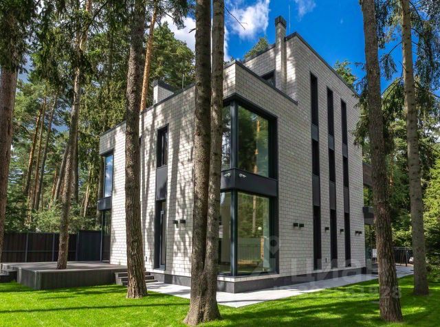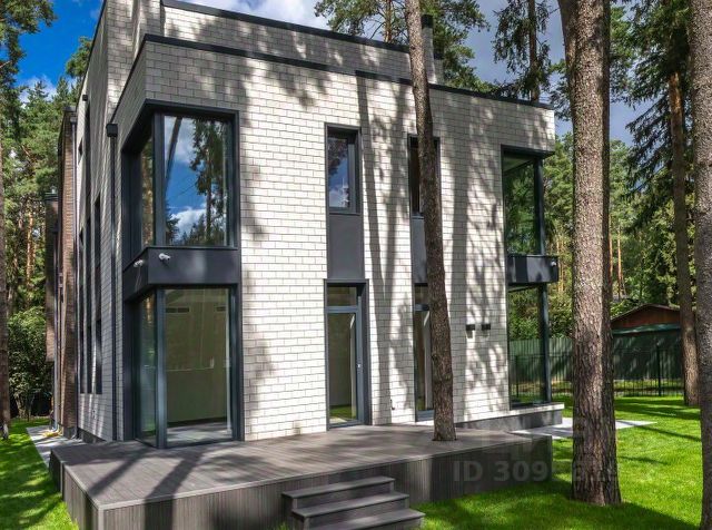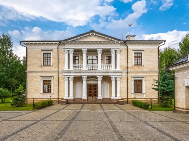 Конус. Загородный коттедж площадью 900 м² расположен на живописном лесном участке 22,5 соток. Фасад, облицованный светлой штукатуркой, выполнен в классическом стиле, что подчёркивают элегантные молдинги, колонны и симметричная форма здания. Наполненные солнцем интерьеры гармонично сочетают фактуры камня и дерева, а комфортная мебель и предметы декора создают ощущение уюта. Для идеального микроклимата установлена система кондиционирования.