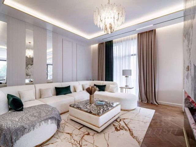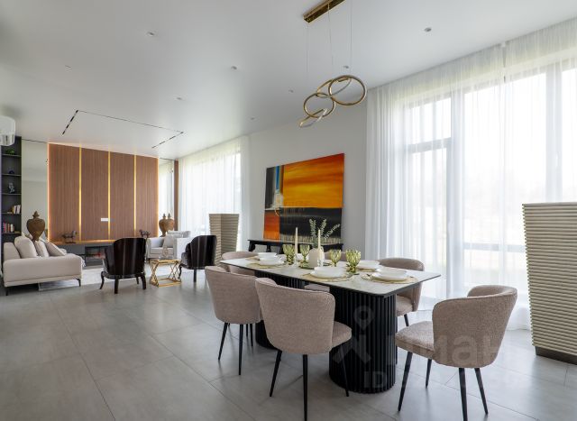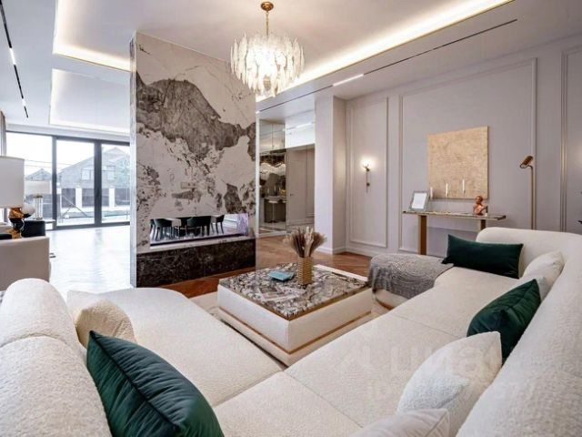 Высококачественная отделка, эксклюзивное цветовое решение стен, установлена современная кухня в натуральном шпоне, полностью укомплектованная шведской техникой Asko, вытяжкой Elica Hidden, встроенной док-станцией с моющим роботом-пылесосом и беспроводной зарядкой для телефона. Столовая-гостиная также полностью укомплектована стильной мебелью в натуральном шпоне.