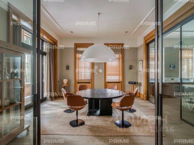 ЛОТ 80132 ЕС Продажа загородной резиденции площадью 2222 кв. м. Новорижское шоссе, 9 км от МКАД. Коттеджный поселок Никольская Слобода. Дом построен в стиле Ллойда Райта. Выполнена высококачественная дизайнерская отделка под ключ в стиле Райта с элементами Ар-Деко. Комнаты отличаются простором, высотой потолков, открытыми террасами и балконами, дом наполнен большим количеством света и воздуха. В отделке интерьеров используются качественные и натуральные материалы премиального класса, только итальянский мрамор, массив дерева, оникс, мозаика ручной работы, латунь и дорогие чугунные батареи. Фасад дома выполнен из клинкера, крыша — стропильная система из металлоконструкции. Укомплектован всей необходимой премиальной техникой. Сантехника в доме представлена европейскими производителями, освещение — американскими. Необыкновенный набор помещений и планировка изумляют. Установлена система вентиляции и кондиционирования. Прекрасное расположение резиденции на зеленом, уютном участке 50 соток с готовым ландшафтным дизайном. На участке высажены крупномеры и хвойные деревья, а также расположен гараж на 4 места с квартирой для персонала.