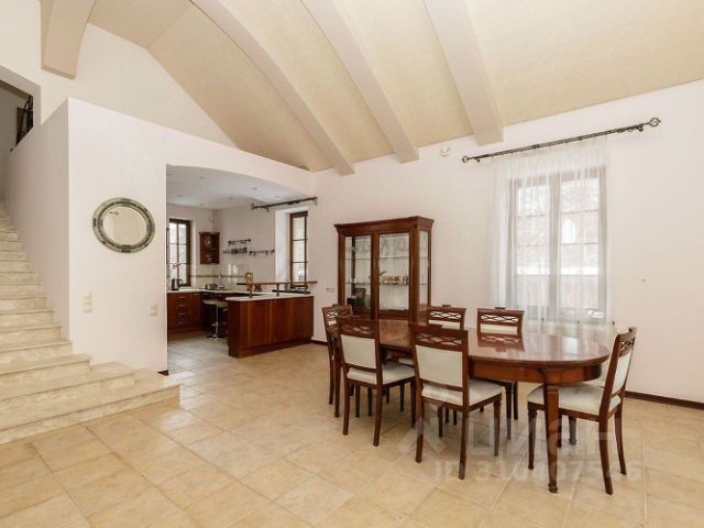 Номер в базе: J5117. Прекрасный дом в поселке Калчуга на Рублево-Успенском шоссе. Расположен в тихом и уютном месте. Рядом вся необходимая инфраструктура. Быстрый выезд на платное скоростное шоссе "Северный объезд Одинцова". Деревня известна с XIX века, и название свое она получила от речки Кольчуги, некогда протекавшей на ее территории. Во время революции 1917 года деревня сильно пострадала, и до 1924 года стояла незаселенной, пока Ф. Дзержинский не организовал неподалеку совхоз Горки-2". В разное время здесь, кроме Дзержинского, проживали И. Сталин, Н. Бухарин, А. Микоян, Б. Шапошников и другие представители политической элиты. Сегодня деревня стоит на берегу речки Медвенки и относится к рублевским" поселкам. Цоколь: Сауна, комната отдыха, постирочная, кладовая, с/у, душевая кабина, котельная Этаж 1: Кухня-столовая-гостиная с камином выход на террасу, гостевая спальная, с/у, гардеробная, еще гостевая комната с с/у Этаж 2: Две спальни со своими с/у, балконами и гардеробными, библиотека Дополнительные строения: гараж м\м Продам загородную недвижимость в деревне Калчуга Московской области.