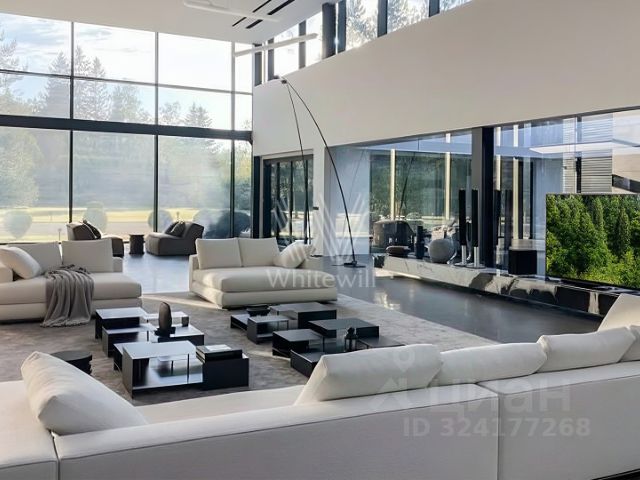 ID 17245 Уникальный, стильный дом, не имеющий аналогов! Домовладение расположено на просторном участке 50 соток в камерном поселке Лайково-2, в удобнейшей локации. Здесь и безсветофорный выезд на платную дорогу, и на Рублевку в районе Усово всё близко! Все жители этого поселка живут там постоянно, так как месторасположение настолько удобное, что и квартирами в Москве не пользуются. Архитектура дома выполнена в актуальном стиле хай-тек, с использованием большого количества фасадного остекления, высоких потолков, лаконичных интерьеров. В доме есть такие особенные фишки, как: - Огромная панорамная гостиная с большим минималистичным камином и 8-метровыми потолками, наполненная светом и воздухом; - большой бассейн с панорамной крышей и стеклянными стенами, СПА-зона с выходами на участок и большую террасу; - гараж на 10-12 м\м для коллекции автомобилей с панорамной стеклянной стеной; - все спальни с видами на лес; - профессионально оборудованный спортзал с панорамным остеклением; - в доме 3 лестницы. Жилая часть дома включает 4 спальных блока с с\у и гардеробными, большую кухню столовую, еще одну гостиную со 2-м светом, множество гардеробных, прачечную, библиотеку, дополнительный гараж на 2 м/м. В отдельном блоке дома, над большим гаражом, сделаны квартиры для персонала (3 спальни с с\у, гостиная, кухня-столовая) В доме не жили, он абсолютно новый! При этом это не объект, построенный на продажу. Строили для себя, и использовали только качественные материалы. Хорошая цена за такой уникальный объект! Звоните! Расскажу подробней, организую просмотр! Участник ассоциации агентств элитной недвижимости AREA Продам загородную недвижимость в коттеджном поселке Лайково-2 в селе Лайково.