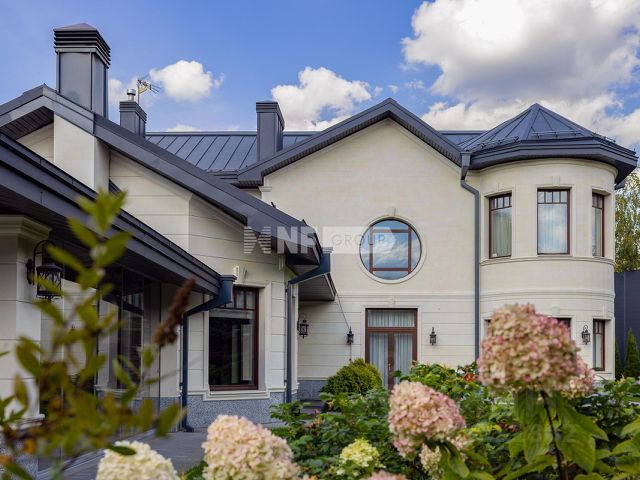 В доме: 4 спальни с ванными и гардеробными, гостиная-столовая, кухня, хобби-комната 50 кв.м, двухуровневая спа-зона с хаммамом, сауной и джакузи, гараж на 2 м/м с зарядкой для электроавтомобиля и помещением для водителя, котельная, отдельный блок персонала с профессиональной кухней в цоколе.